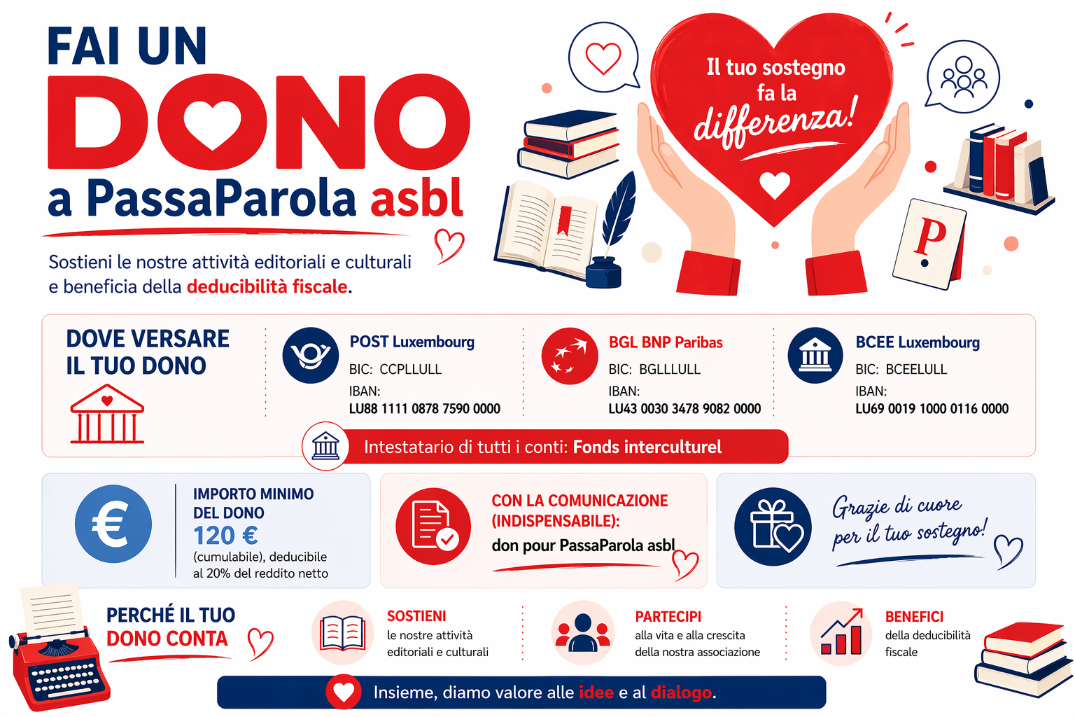 Chiunque può sostenere un’associazione accreditata effettuando un bonifico sul conto del Fondo Interculturale con la causale “Sostegno” e il nome dell’associazione (IMPORTANTE: nella causale indicare DON PASSAPAROLA).