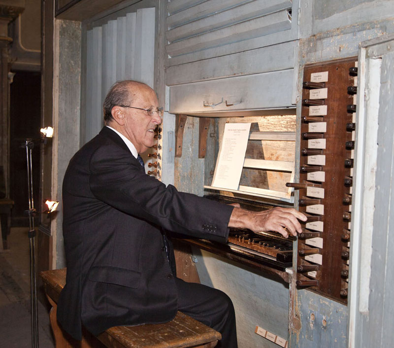 Programme du concert: Bernardo STORACE Toccata e Canzona in sol (sec. XVII) Ballo della Battaghlia (1664) Bernrdo PASQUINI Toccata in re (1637-1710) Variazioni in sol Pastorale Sonata in Do Arcangelo CORELLI Concerto grosso in Do maggiore n° 10 trascritto per organo (1653-1713) come Voluntary VI da John MARSH (1752-1828) Preludio Allemande Allegro Minuetto Preludio e Gavotta dalla Sonata in Fa maggiore op. V n° 5 trascritti per organo come Voluntary XXV da John MARSH Antonio VIVALDI Concerto in re minore Op. IV (La Stravaganza) n° 6 (1678-1741) nella trascrizione per tastiera dell’Anne Dawson’s Book (c. 1720) Allegro Largo Allegro Domenico SCARLATTI Sonata in re minore (Kirk. 77) (1685-1757) Moderato e cantabile Minué Tre Sonate “per organo a due tastature” in Sol maggiore (Kirk 328) in Re maggiore (Kirk. 287-288) Domenico CIMAROSA (1749-1808) Tre Sonate in sol minore (Coin 52) in do minore (Coin 49) in sol maggiore (Coin 51)