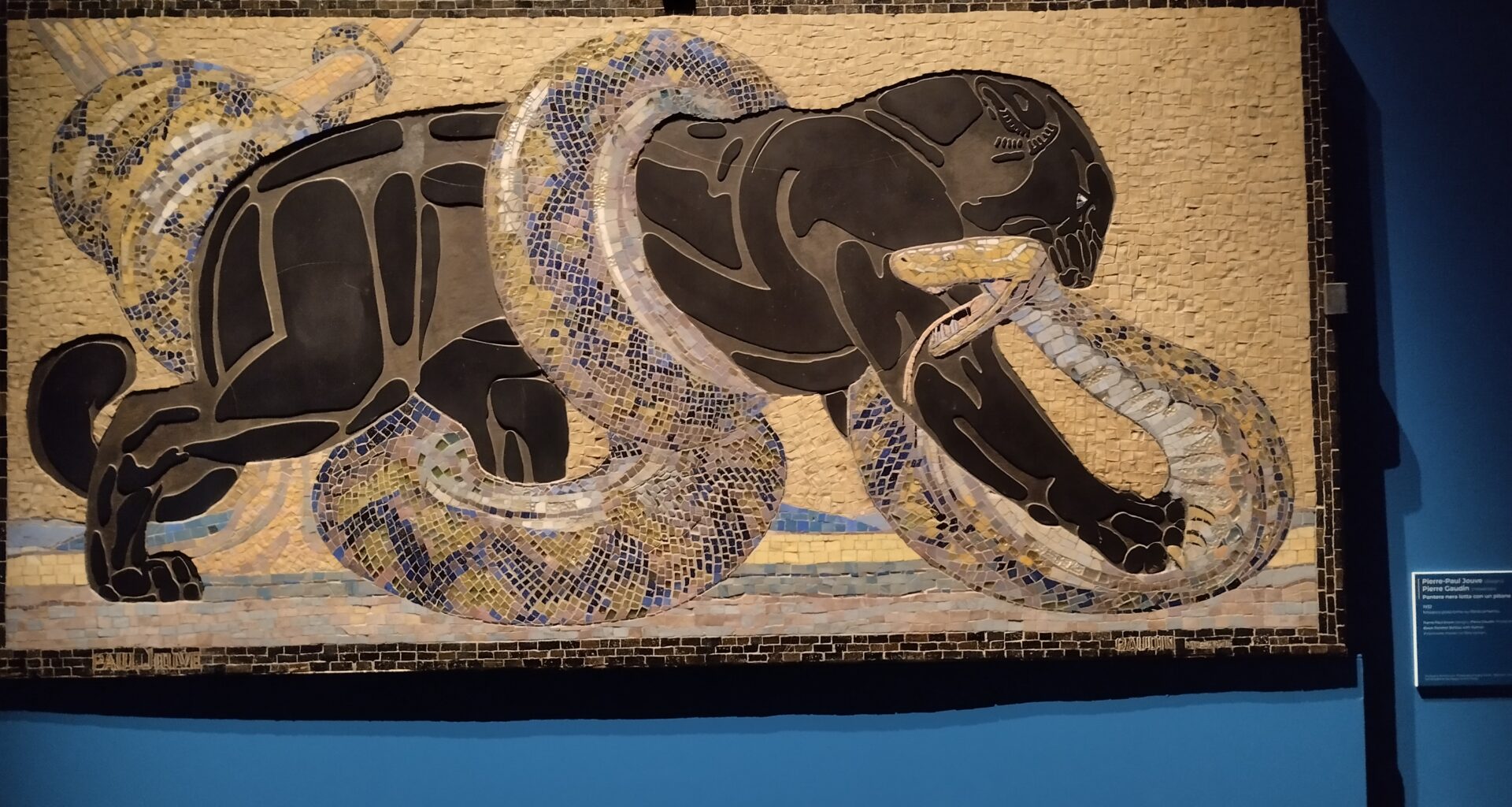 L’Art Déco si interessa dell’Oriente e dell’esotismo: vengono raffigurati animali quali pantere, leopardi, o pesci tropicali, sia nelle sculture che nei dipinti. Molto particolare è l’opera di Pierre Paul Jouve e Pierre Gaudin “Pantera nera lotta con un pitone”, dove la Pantera è avvolta dal pitone. Un altro punto forte dell’ Art Déco è la ricerca del mito, che vede in Diana, regina della caccia, la donna moderna, scattante e seducente, come raffigurata nella statua di Marcel Bourin. Parlando di esotismi non si può non citare Joséphine Baker che da Broadway a Parigi incanta il pubblico danzando provocatoriamente ”vestita” di una sola cintura di banane. In questo modo, ironizza sulla visione che l’Europa ha del Continente africano e delle sue tradizioni. L’amore che i sostenitori dell’Art Déco hanno per l’Oriente, l’Africa e l’antichità lo si vede anche nei film dove trionfano l’Egitto, la Cina e il Giappone con i loro meravigliosi abiti e le scenografie “ad hoc” e nelle ceramiche che Gio Ponti realizza per Richard-Ginori, dove le scene mitologiche sono riviste con occhi moderni tra romanticismo e ironia. Sì arriva così agli Anni ’30 che decretano la fine dell’ Art Déco: il periodo euforico e ” glamour” ben descritto ne “Il Grande Gatsby” di Francis Scott Fitzgerald volge al termine, accompagnando l’ umanità verso un nuovo tragico destino.