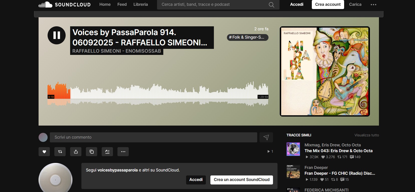 Cominciamo con il nuovo disco di RAFFAELLO SIMEONI, dal titolo MIRABILIA, nostro nuovo disco del mese includendo anche l’intervista dell’artista rietino. Proseguiamo con il nostro disco rivelazione, un tuffo nella sperimentazione vocale con uno degli artisti italiani più interessanti in questo settore: Enomisossab. Nell’intervista ci spiega nel dettaglio la nuova raccolta CANTI DEL SALMONE.