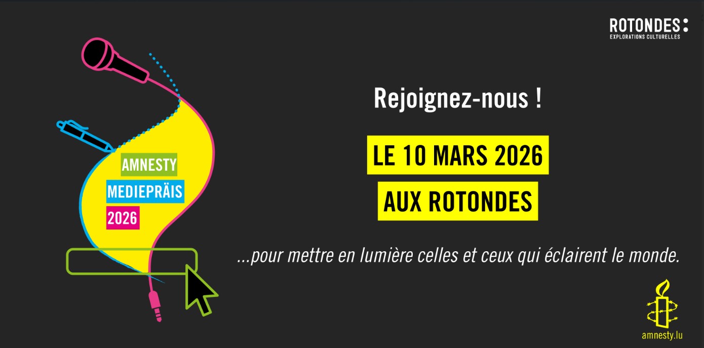 Amnesty International Luxembourg, en partenariat avec les Rotondes, organise cette année encore, son prix médias. À vos candidatures