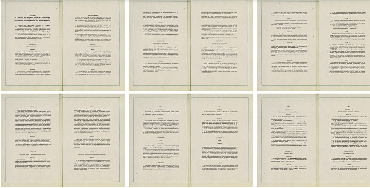 Per realizzare l’esposizione, l’artista si è ispirata all’archivio DOMiD – che conserva oggetti e testimonianze delle migrazioni in Germania – attraverso il quale ha costruito un percorso poetico e visivo intorno al tema della memoria. Attraverso una call pubblica, l’opera si è arricchita di nuovi oggetti, aneddoti, interviste a esponenti della seconda e terza generazione, dando voce a storie individuali che raccontano un’esperienza collettiva. “La Stanza di Mnemosine”, dal nome della dea greca della memoria, invita il pubblico a riflettere sul valore degli oggetti come custodi di emozioni, identità e vissuti spesso dimenticati. Il progetto restituisce la complessità dell’esperienza migratoria italiana in Germania, andando oltre la figura storica del Gastarbeiter, e propone uno sguardo attuale sul tema dell’integrazione e dell’eredità culturale. Un’opera che intreccia passato e presente, archivio e immaginazione, per non smettere di interrogarsi su cosa significhi oggi ricordare e appartenere. L’allestimento è stato pensato in occasione dei 70 anni dell’accordo italo-tedesco del 1955 per il reclutamento della manodopera italiana nella Repubblica Federale di Germania.