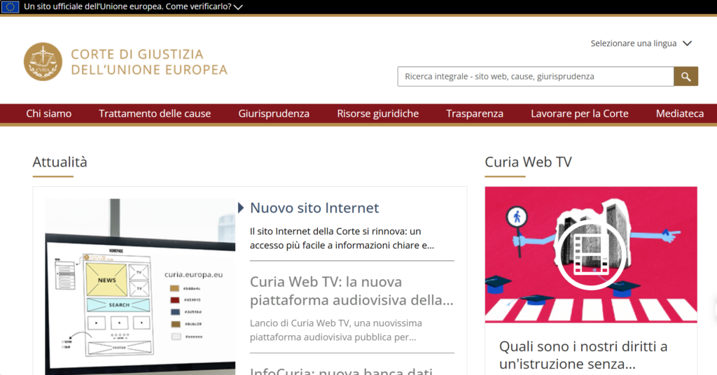 Il nuovo sito presenta diverse innovazioni volte a favorire una migliore esperienza per gli utenti, pur mantenendo tutti i documenti pertinenti che erano già disponibili nella versione precedente. Inoltre, esso include due elementi centrali per l’accesso alle informazioni: il nuovo motore di ricerca InfoCuria e il programma audiovisivo della Corte – CVRIA Web TV – che è stato lanciato in questa occasione.