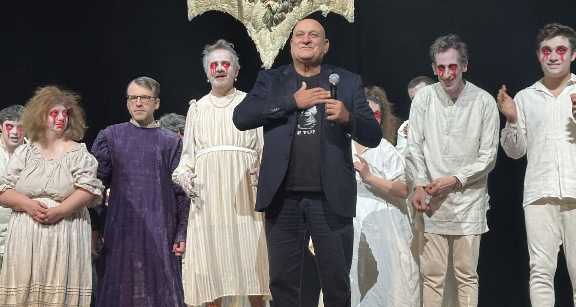 Ieri sera (8 febbraio, ndr), all’Auditorium di Roma, questa verità ha smesso di essere pura astrazione letteraria per farsi corpo, voce, presenza scenica. “La Commedia divina”, messa in scena dal Teatro Patologico di Dario D’Ambrosi, fondatore e direttore artistico, ha trasformato il palcoscenico in un paradiso possibile, dove tutti i protagonisti hanno dimostrato che l’arte diventa cura autentica quando offre a ciascuno uno spazio per rivelarsi. Ieri sera è accaduto qualcosa di straordinariamente necessario: non un trionfo su un avversario, ma un atto di resistenza contro l’indifferenza che esclude, contro il silenzio che nega. Ogni ingresso in scena è stato una dichiarazione, ogni battuta un’affermazione, ogni passo un abbraccio, ogni movimento un’epifania.