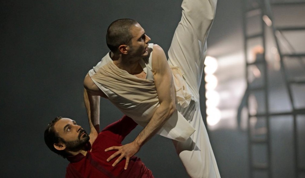 La Divina Commedia, scritta all’inizio del XIV secolo, è considerata uno dei pilastri della letteratura mondiale. Racconta il viaggio ultraterreno di Dante attraverso Inferno, Purgatorio e Paradiso, guidato prima da Virgilio e poi da Beatrice. Nel balletto di Scafati, questa narrazione non viene semplicemente illustrata, ma reinterpretata in chiave contemporanea, dando vita a una riflessione attuale sul senso dell’esistenza e sulla condizione umana. Lo spettacolo si apre con un’immagine iconica: Dante smarrito in una “selva oscura”, simbolo di crisi personale e disorientamento. Da qui prende avvio un percorso che lo conduce attraverso i nove cerchi infernali, il monte del Purgatorio e le sfere celesti del Paradiso, alla ricerca di redenzione e significato. Attraverso due strutture mobili che rappresentano i gironi e che donano alla rappresentazione quella vorticosità che era propria dei dannati, Scafati riesce da subito a farci immergere nell’universo dantesco: la danza di Dante e Virgilio, interpretati dai talentuosi italiani Giorgio Strano e Francesco Cuoccio è intensa e dinamica, avvolgente quella di Paolo e Francesca (Francisco Camarneiro e Sofia Emanuela Cappelli) attraverso gesti spezzati e tensioni fisiche.