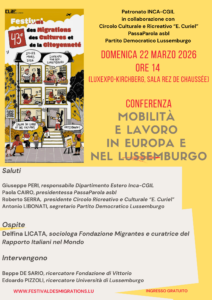 Proposée par le Patronato INCA-CGIL en collaboration avec le Circolo Culturale e Ricreativo Eugenio Curiel, PassaParola et le Partito Democratico Lussemburgo