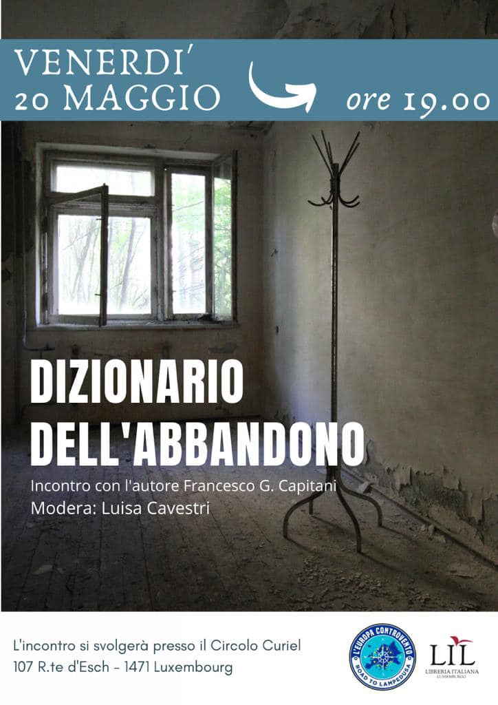 venerdì 20 maggio alle ore 19h00 per la presentazione del libro di Francesco Capitani ”dizionario dell’abbandono”.