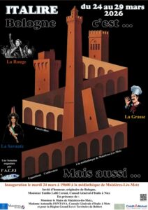 L’A.C.F.I. a le plaisir de vous inviter à la nouvelle édition de notre semaine culturelle ” ITALIRE 2026, qui mettra cette année à l’honneur la magnifique ville de BOLOGNE, surnommée à juste titre “la Dotta, Grassa e Rossa” (la Savante, la Grasse, la Rouge).