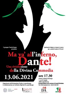 15 attori di 11 nazionalità differenti reciteranno “Ma va’ all’inferno, Dante!”, una leggera quanto rispettosa rivisitazione della Divina commedia che avrà la durata di circa 80 minuti. Musiche e proiezioni create per l’occasione.