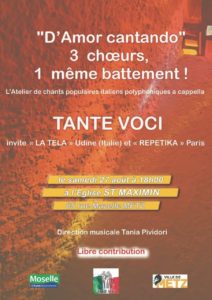 A l’occasion de son traditionnel stage d’été, TANTE VOCI avec ses ami.es. de “La Tela” (Italie) et de “Repetika” (Paris), organise deux concerts.